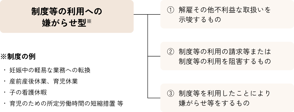 妊娠・出産、育児・介護に関する制度の利用に関する言動により就業環境が害されるものをいいます。