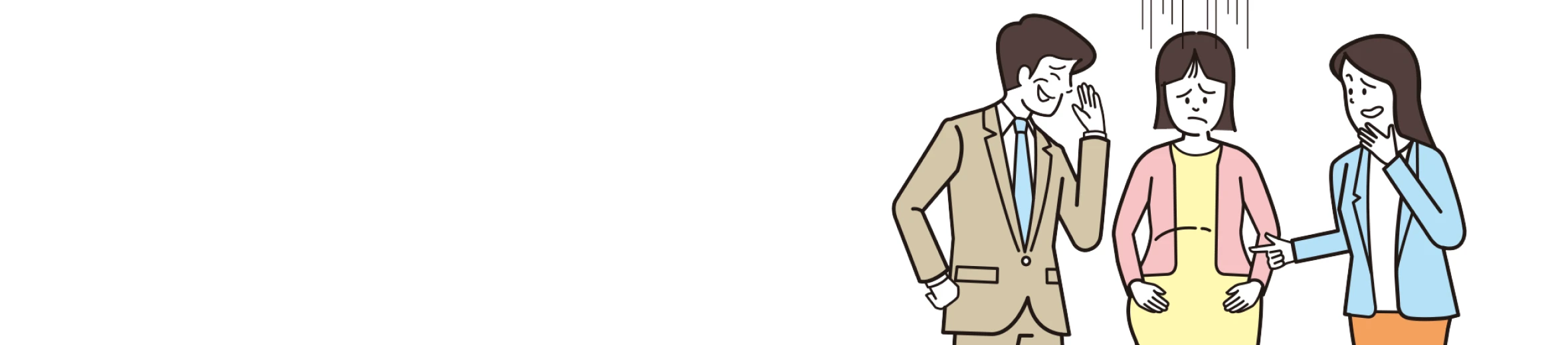 - 同僚から「こんな忙しい時期に妊娠するなんて信じられない」と繰り返し言われ、精神的に落ち込み業務に支障が出ている。